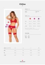 Комплект Chilisa від культового бренду Obsessive – це спілка пристрасті та витонченості, в якій кожна деталь продумана до досконалості. Яскраво-червоний колір – сміливий, чуттєвий, чарівний. Він говорить без слів, збуджує уяву та підкреслює внутрішню силу жіночності. Цей відтінок створений для того, щоб приковувати погляди і залишатися в пам'яті.