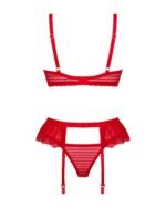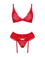 Комплект білизни Obsessive Chilisa з вишивкою та поясом для панчіх – втілення спокуси у червоному кольорі. Дозвольте собі бути зухвалою, чарівною та закоханою у власне відображення.