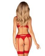 Ажурний комплект білизни з поясом для панчох Obsessive Chilisa червоний, XS/S