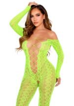 Бодістокінг Leg Avenue Crotchless Footless Lingerie Bodystocking One Size Neon Green