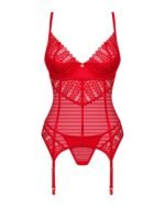 Корсет з ажурними вставками та стрінги Obsessive Ingridia червоний, XS/S