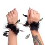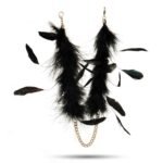 Наручники чорні з довгим пір’ям DS Fetish на золотому ланцюжку