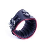 Нашийник анатомічний з трьома кільцями DS Fetish чорний з червоним рядком (Голландія)