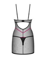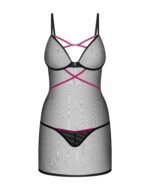 Прозорий пеньюар із декоративними рожевими шлейками Obsessive Novenes та трусики, XS/S