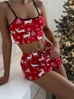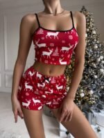 Цей чарівний комплект із новорічним принтом у вигляді оленів та сніжинок -ідеальне поєднання комфорту, настрою та трішки спокуси