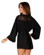 Халат з мереживом та довгими рукавами Obsessive Bellastia чорний, M/L