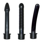 Чорний інтимний душ із трьома різними насадками. Одна насадка злегка вигнута, інші стрілоподібні та закручені. Кожен з двома отворами та довжиною 12 см. Об’єм інтимного душу 100 мл. Матеріал: АБС, гума.