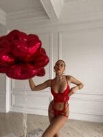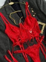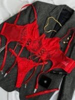 Вогняний червоний, ніжне мереживо та бездоганний крій – цей комплект створений для дівчат, які не бояться бути спокусливими!
