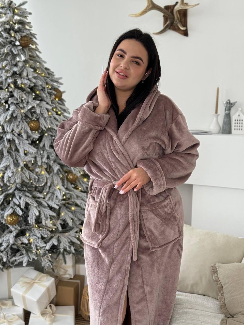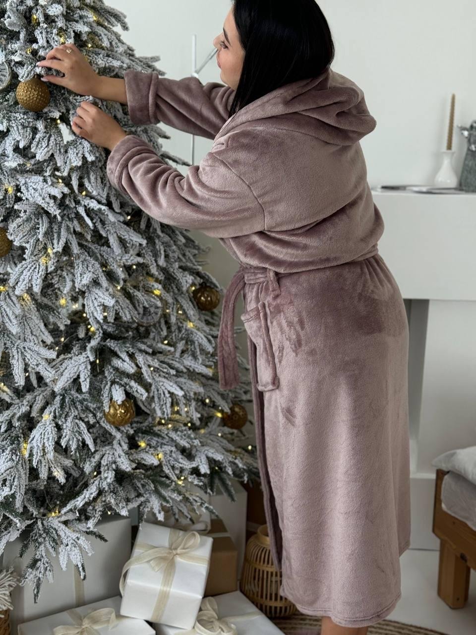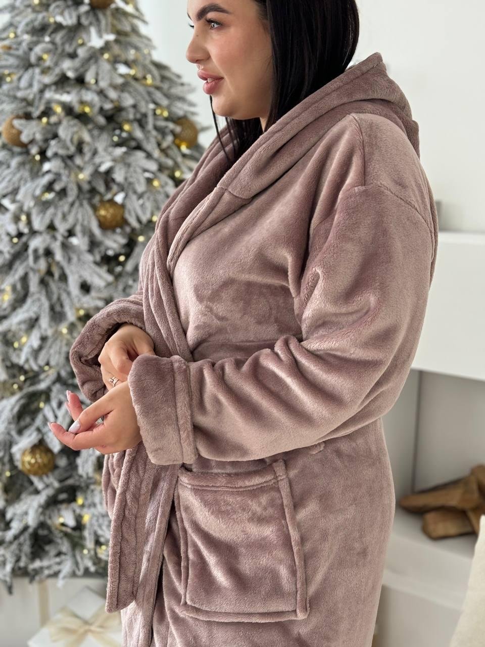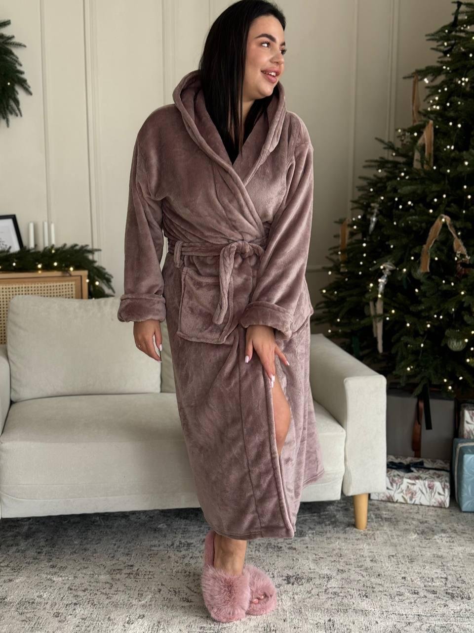 халатик з кишеньками, поясом та капюшоном