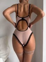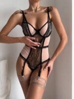 Цей елегантний боді з чорного мережива та нюдовими вставками створений для розкішних дівчат