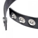 З цим аксесуаром ви зможете відчути себе справжньою королевою! Чорний чокер ідеально сяде на вашу шию, роблячи обличчя більш виразним. Блиск в очах відтінятимуть розсип страз, які є на невеликому металевому серці ошийника. Продемонструйте партнеру всю свою розкіш та розкіш! Ви можете створити по-справжньому хвилюючий образ із цим чокером. Просто доповніть його шкіряним корсетом або сукнею з відкритими грудьми. Так само в образ можуть чудово вписатися чорні рукавички вище ліктя або грайливі колготки в сіточку. Три заклепки допоможуть вам легко підрегулювати розмір нашийника під себе.
