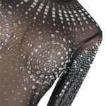 Напівпрозора тканина додає загадковості та витонченості, а стрази, що прикрашають передню частину та рукави, створюють сяючий ефект, підкреслюючи шию, груди та талію. Сукня має комір, який надає образу вишуканості та підкреслює лінію шиї. Це чудовий вибір для романтичних зустрічей або особливих подій, де ви хочете виглядати спокусливо та витончено.