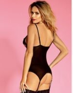 Корсет виглядає дуже сексуально та збудливо. Зверху він прикрашений мереживом на чашках, а низ виконаний у вигляді еластичної тканини.