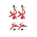 Набір затискачів для сосків з дзвіночками та бантиками Senuelo Chisa, червоний, 2 пари