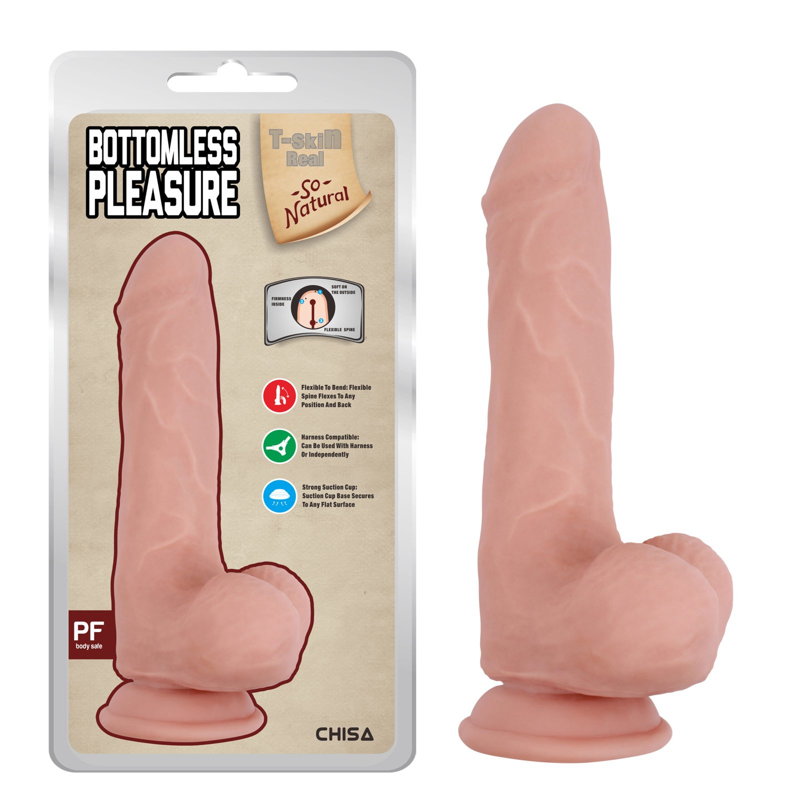 Фалоімітатор реалістичний Chisa T-skin ReaL Bottomless Pleasure з мошонкою на присосці