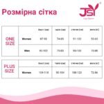 Розмір One Size: об’єм грудей — від 87 до 98 см, об’єм талії — від 74 до 85 см, об’єм стегон — від 91 до 102 см.