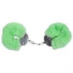 Наручники DS Fetish Plush handcuffs, метал із хутром, зелені