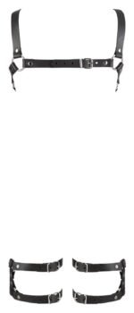 Ремінці сексуально перетягують оголену шкіру та збуджують уяву. Виконаний з натуральної шкіри чорного кольору та прикрашений металевою фурнітурою.