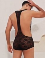 Дайте волю своїй сміливій та зухвалій стороні з чорним чоловічим сексуальним мереживним комбідресом! Виготовлений із високоякісного мережива, цей боді пропонує провокаційний та спокусливий вигляд. Ідеально підходить для тих, хто любить ризикувати та приймати свою внутрішню чуттєвість.