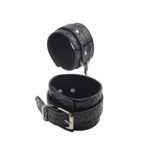 Браслети з’єднуються завдяки невеликому карабіну на клямці. Фіксація проводиться за допомогою класичної застібки, завдяки цьому їх не важко налаштувати з урахуванням індивідуальних особливостей партнера. Браслети виконані зі штучної шкіри найвищої якості з художнім тисненням.