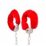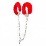 Поножі метал з хутром DS Fetish Ankle Cuffs, червоні