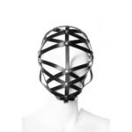 Чорна шкіряна маска на голову доповнить ваш образ, який підійде як для сесії БДСМ з вашим партнером, так і для закритої кінк-вечірки!