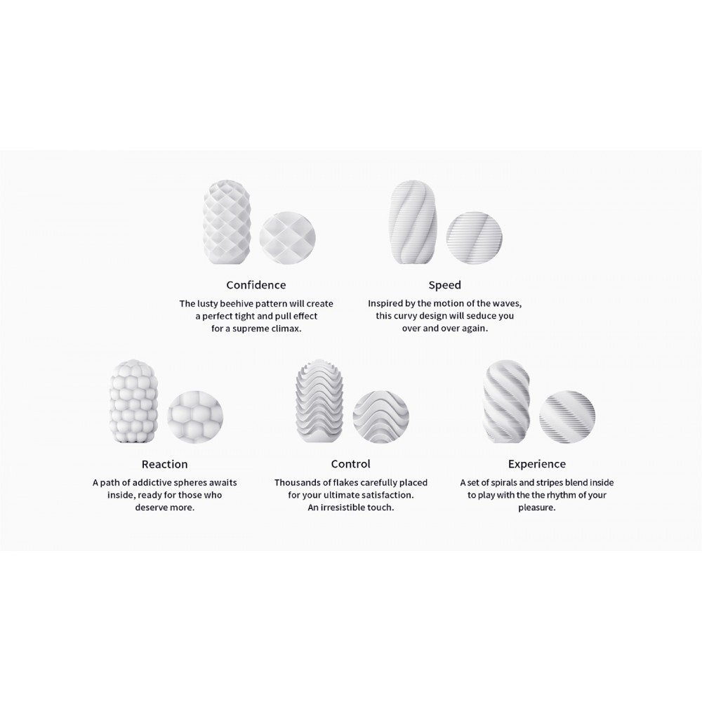 Щільний та відчутний рельєфний візерунок створить ідеальний ефект натягу та стимуляції для максимального кульмінаційного моменту. Розпакуйте, зволожте та насолоджуйтесь! Загалом у серії 5 нових дизайнів, а значить 5 нових вражень!