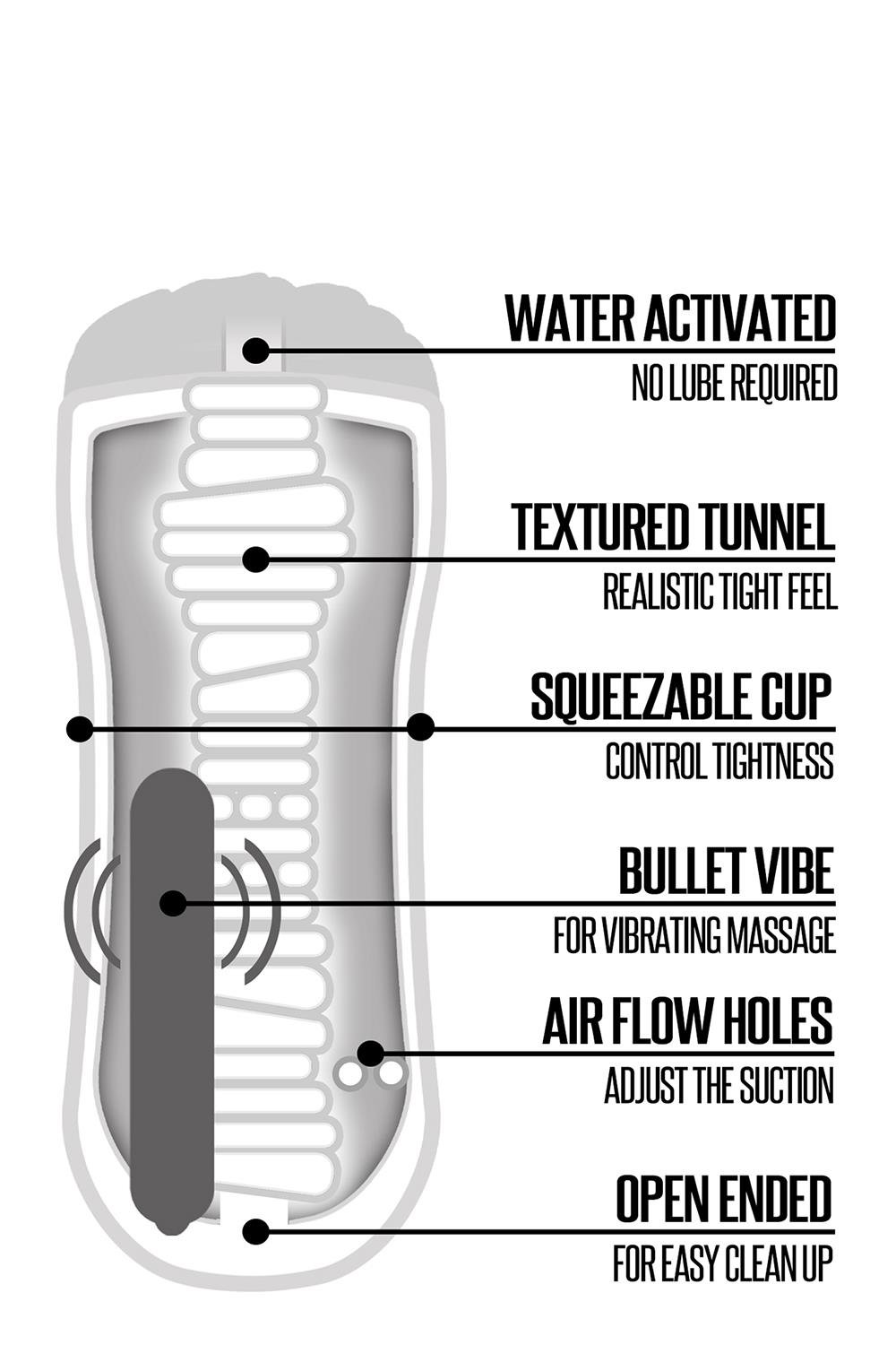 Використовуйте іграшку окремо або в чашці, що стискається для мастурбації. Тонкий тунель кицьки здається таким реальним і має подвійні отвори повітря, які регулюють всмоктування. Дуже довгий шнур для душу. Легко очищуваний рукав з відкритим кінцем. Безпечний для тіла і не містить фталатів. Використовує 1 батарейку ААА (не входить у комплект).