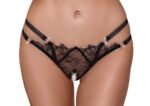 Еротичні мереживні стрінги зі стразами Cottelli, з відкритою інтимною зоною, чорні, S/M