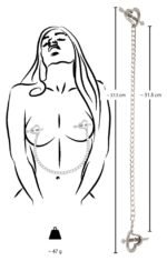 Приготуйтеся поринути у світ пристрасті та ігор із затискачами на соски у формі серця від Bad Kitty! Ці унікальні та стильні затискачі не тільки додадуть вашим сексуальним іграм особливий шарм, але й подарують незабутні відчуття. Кожен затискач виготовлений з нержавіючої сталі та має форму серця, що символізує ніжність та пристрасть одночасно. Двох пружних штифтів у формі стрілки, що зустрічаються всередині серця, можна розсунути, щоб легко та комфортно помістити соску. Після цього вони ніжно стискають соски, створюючи приємний біль та збудження. Ці елегантні затискачі стимулюють вашу чуттєвість, дозволяючи випробувати суміш задоволення та солодких тортур. Чуттєві відчуття, які вони приносять, стимулюватиме кожен ваш рух і наблизить вас до вершини насолоди. Затискачі Bad Kitty також прикрашають область грудей крутим ланцюжком з нержавіючої сталі, додаючи нотку садомазохізму та загадковості у ваші інтимні моменти. Довжина ланцюжка становить 31,5 см, що дозволяє досліджувати різні позиції та кути стимуляції. Загальна вага затискачів 47 грам, що робить їх легкими та зручними у використанні.