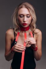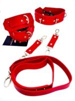Нашийник з повідком та наручниками “Fet 22”, екошкіра, ручна робота, червоні