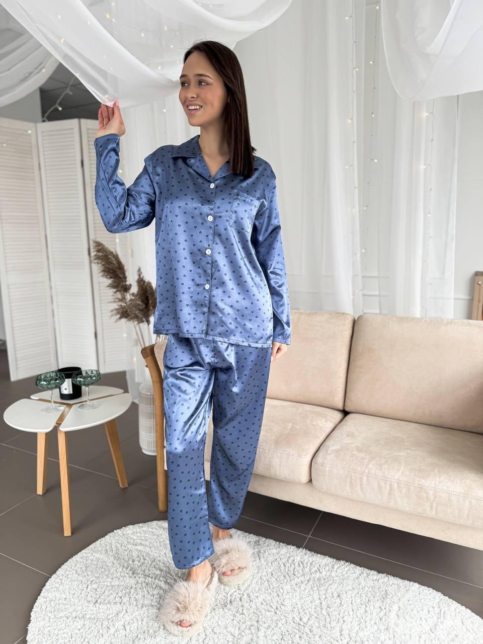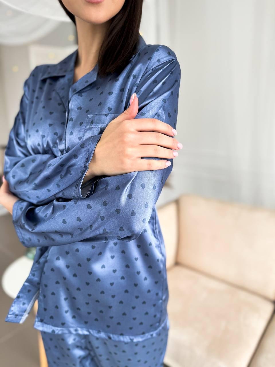 Піжама сорочка штани DO2677 (Рожеві серця)