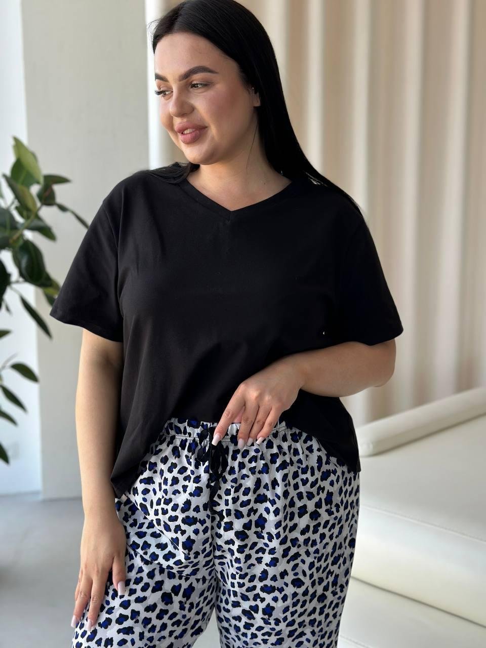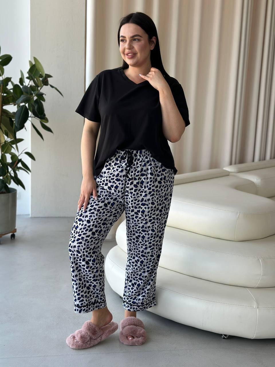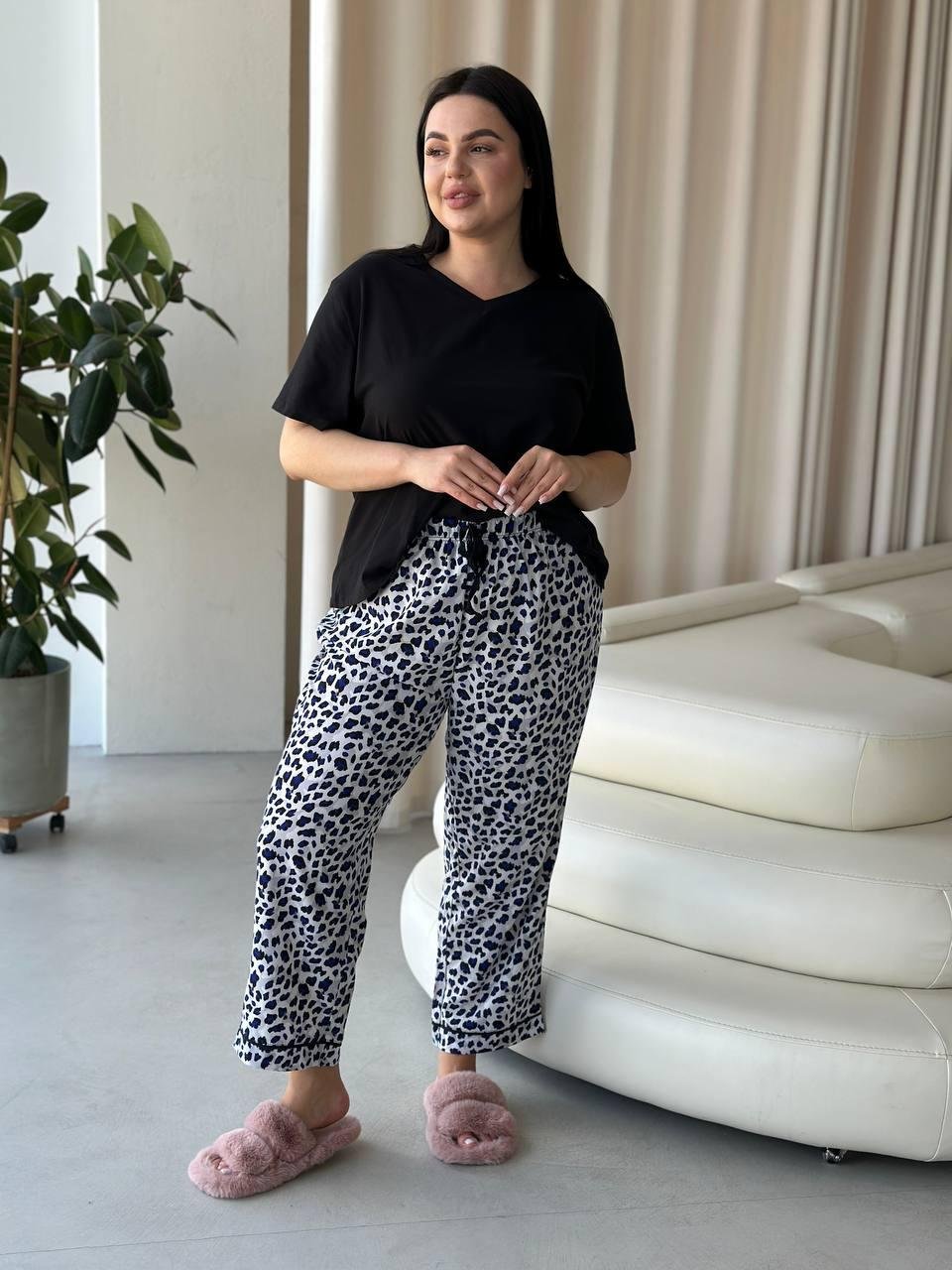 Піжама футболка + штанці DO2839 Блакитне лео PLUS SIZE