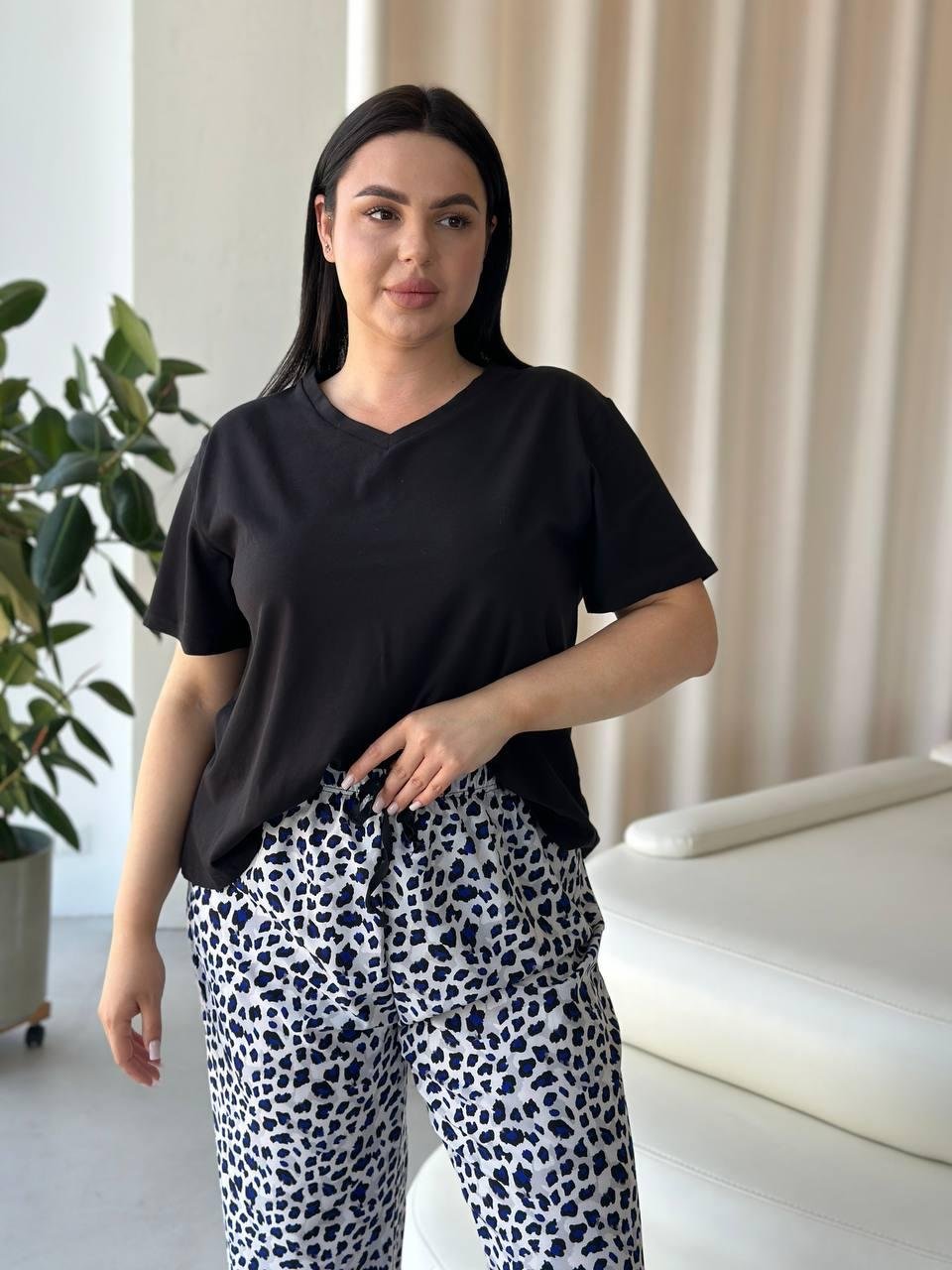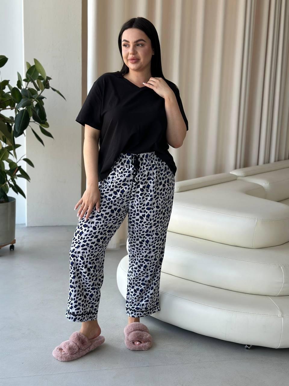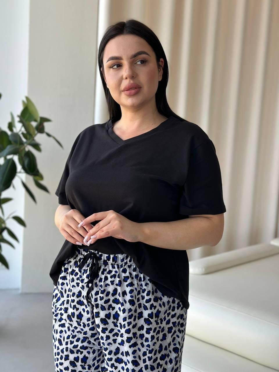 Піжама футболка + штанці DO2839 Блакитне лео PLUS SIZE