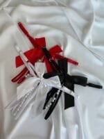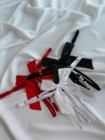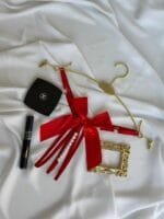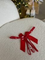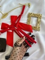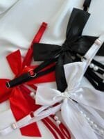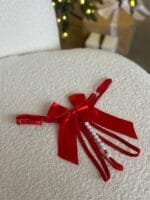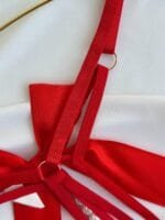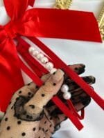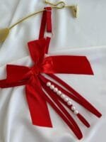Еротичні червоні трусики з відкритим доступом, прикрашені ніжними перлинами та елегантним атласним бантом – ідеальний вибір для особливих моментів.