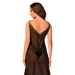 Пеньюар довгий Obsessive Estiqua з відкритою спиною, чорний, M/L