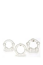 Носіть ці 3 кільця разом або окремо, щоб випробувати новий оргазм. Ви отримуєте 3 наделастичні прозорі кільця з термопластичного еластомеру за однією відмінною ціною. 3 рівні підтримки: екстремальна, інтенсивна та жорстка. Використовуйте одне кільце, як завжди, або два кільця для сильнішої ерекції, або всі 3 для неймовірної ерекції. Поекспериментуйте з тим, де ви помістите їх на стовбур, разом або на відстані один від одного, і перетворите свою ерекцію на машину кохання.