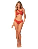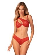 Комплект мереживний Obsessive Atenica c асиметричним дизайном бюстьє, червоний, XS/S