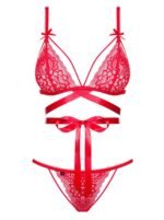 Комплект мереживний Obsessive Lovlea зі стрічками, червоний, L/XL