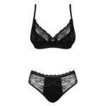 Бренди: Obsessive Комплект складається з бюстгальтера та трусиків у тон. Поєднання квіткового мережива та чорної атласної тканини. Регульовані бретелі забезпечують ідеальну посадку. Чашки на кісточках: ідеальні для великих грудей. Атласний бантик між грудьми. Матеріал ніжний на дотик і ідеально еластичний. Склад: 90% поліамід, 10% спандекс.