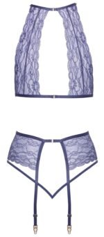 Бюстгальтер без кісточок, пояс для панчох та стрінги в комплекті від kissable повністю виконані з ніжного мережива. Він м’який та еластичний, що означає, що його дуже зручно носити. Стильний бюстгальтер має застібку на гачок ззаду на шиї та ззаду. Пояс для панчох має застібку-гачок ззаду та регульовані лямки для панчох. Маленька зав’язка надзвичайно спокуслива завдяки двом вузьким еластичним ремінцям, які сходяться в області промежини.