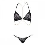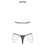 Зверніть увагу на Obsessive Pantheria! Це неймовірно сексуальний комплект білизни, який привертає увагу своїми елегантними золотими ланцюжками і глибоким чорним кольором.