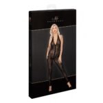 Напівпрозорий еротичний комбінезон з блискавкою F286 Noir Handmade, з леопардовим принтом, чорний