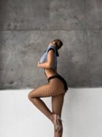Колготки в сітку з відкритими доступом можна додати окремо, щоб завершити провокаційний образ