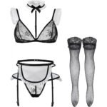 Включає 5 предметів – фартух для воріт, пов’язку на голові, міні -батерглаттер, ремінці та панчохи