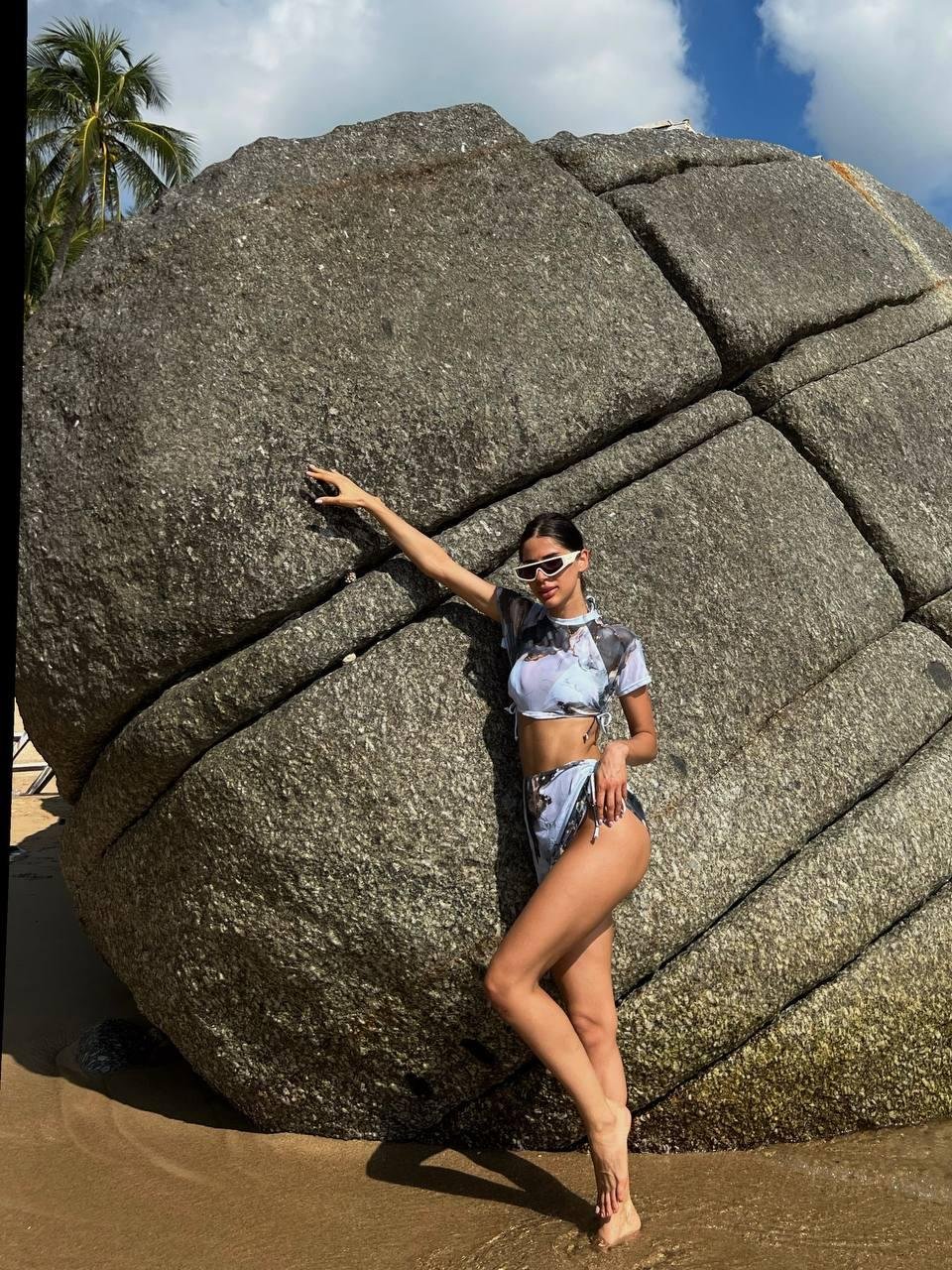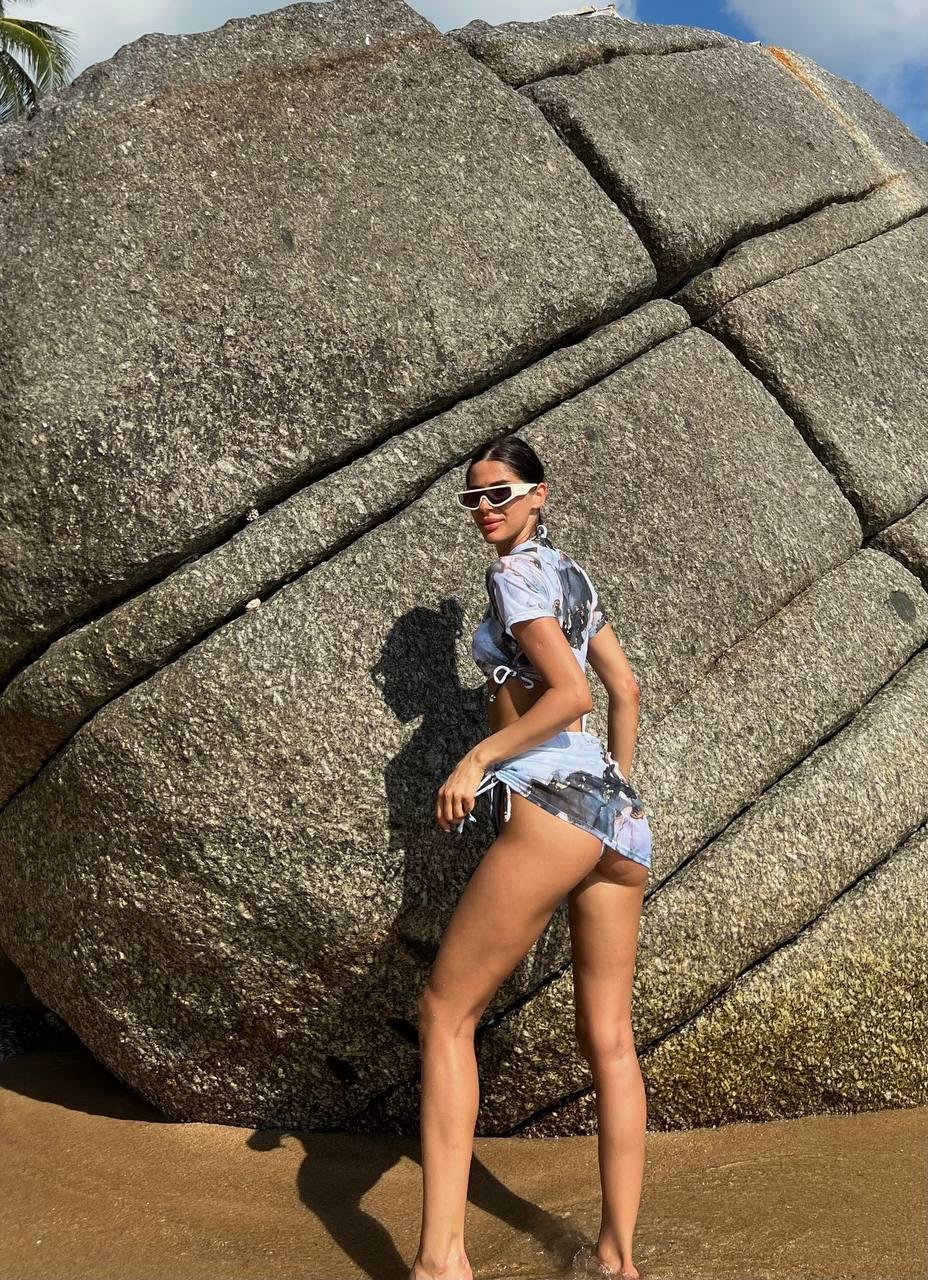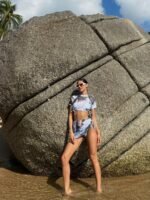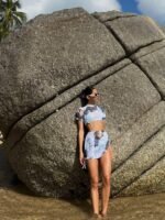Стильний пляжний комплект: купальник+ спідниця+топ