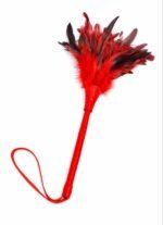 Тіклер DS Fetish зі штучного пір’я, на довгій ручці, червоний, 35 см