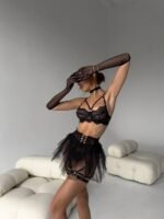бюст+трусики+пояс+ гартери+чокер+рукавички